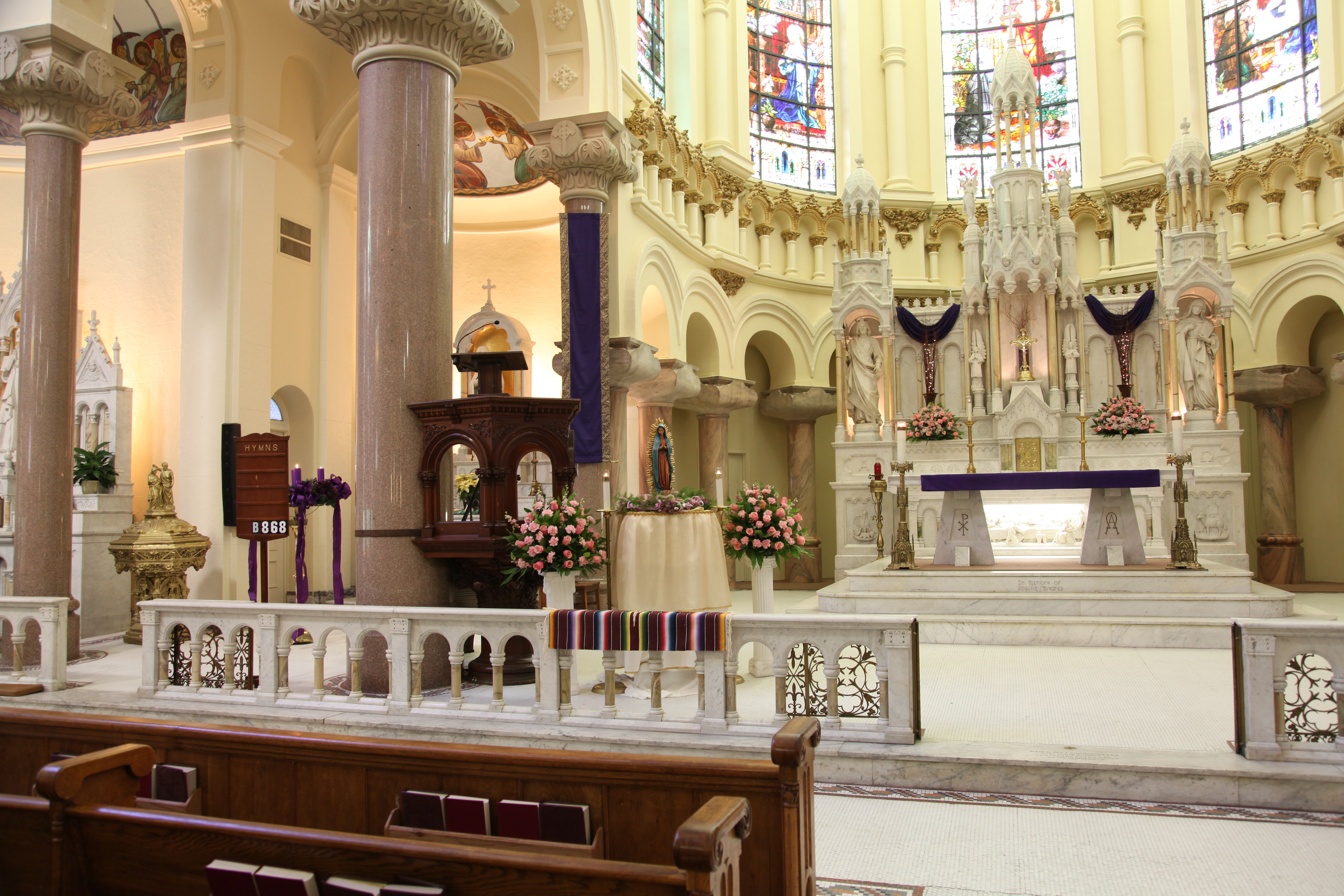 For me there is no cross more stunning, more captivating that the crucifix at St Rose in Gaithersburg, MD. The crucifix is in two parts. The cross is suspended from the vault of the ceiling and is the normal wooden cruciform we expect. The corpus, the body of the crucified Christ is suspended independently from the cross – forward of the cross – in mid air. The body of Christ almost seems to be in free fall. The angle of the body is as though Jesus had begun to fall forward into death, yet the back is arched and chin lifted up towards the heaven. The arms are slightly raised as if they are reaching heaven ward, raised up for the Father to reach down, grab a hold of him and lift him up. Where the body shows the ravages of the scouring and the marks of the cross, the face is expected, sure, hopeful — the countenance of trust in his Father. All will be according to God’s plan.