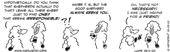 The Parable of the Lost Sheep – you’ve heard it countless times before and have taken in just as many homilies. I suspect the “take away” from the parable and the homily was focused on the shepherd – as it should be. I will simply say that indeed Jesus is the Good Shepherd and is relentless in search for and finding us. No matter how far we have strayed or what we have done, Jesus will find us and ever offer to take us up on his shoulders and bring us home. Always. That my friends, is as good a Good News as you can get. People of God, can I get an “Amen!”