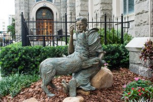 Adding a key “Franciscan element” inside the church was pratically a non-starter. But if inside the church was not an option…what about outside the church? In 2014 when we renovated the front steps and entry plaza of the church, we kept that in mind. For several years there was a spot on the Twigg Street side of the church that was left unoccupied – intentionally so. We always had a vague idea of something uniquely Franciscan occupying the spot.