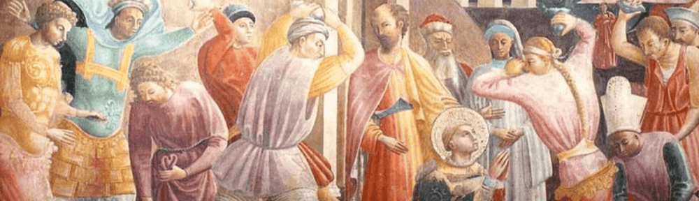 Image credit: Paolo Uccello – Stoning of St Stephen, 1435, Prato Cathedral – Italy | PD=US