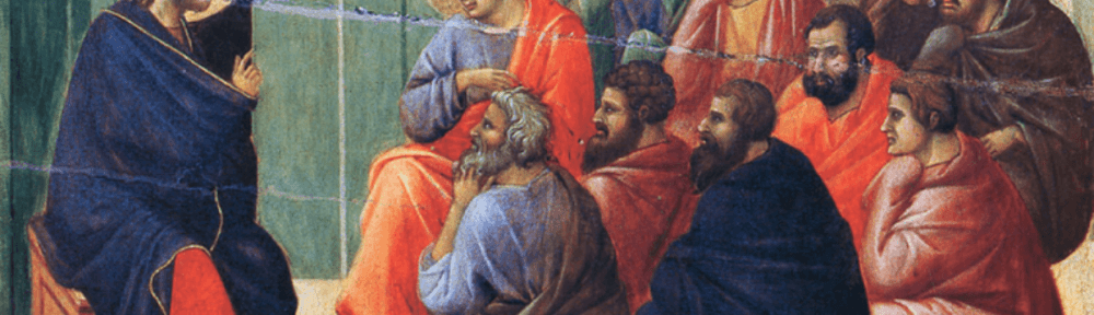 Image credit: Christ’s Final Address to the Apostles | Bona Duccio di Buoninsegna, 1380 | from the Maesta Altar | Siena, Museo dell’Opera del Duomo | PD-US