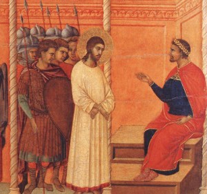 Up to this point in the narrative the chief priests, scribes, and leaders have been the ones who have been active throughout the arrest, hearing and trials of Jesus. While in the privacy of the Sanhedrin gathering, the charges brought against Jesus by this group were religious. Once the assembly moved to the public forum involving Pilate, the charges became secular – “misleading our people; he opposes the payment of taxes to Caesar and maintains that he is the Messiah, a king.” (23:2) In the start of this section, “the people” are now present. Previously the people have supported Jesus (cf. 19:47-48, 20:1, 20:6, 20:19, 21:38) – what will they do now?
