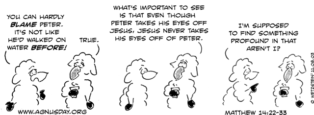 Back in the Boat. There are many commentaries and sermons on the web that proclaim “get out of the boat!” One, somewhat cleverly, referred to the great danger that Christians are just at Sunday worship and become “boat potatoes” never taking faith outside the walls of the church. I did not find any that talked about being “back in the boat.” As mentioned a few days ago, we should be mindful that each Sunday we sit in the “nave” of the church, a word whose origins come from the Latin navis which means “boat” or “ship.” We have already considered a range of reason why Peter would have gotten out of the boat and stepped in to the chaos of the storm. It is that vein that people encourage “boat potatoes” to go over the sides, into the storm, where people need to be rescued. Continue reading