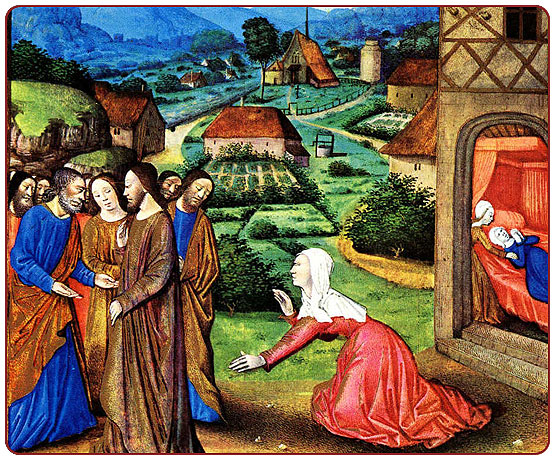 Matthew 15:21-28 21 Then Jesus went from that place and withdrew to the region of Tyre and Sidon. 22 And behold, a Canaanite woman of that district came and called out, “Have pity on me, Lord, Son of David! My daughter is tormented by a demon.” 23 But he did not say a word in answer to her. His disciples came and asked him, “Send her away, for she keeps calling out after us.” 24 He said in reply, “I was sent only to the lost sheep of the house of Israel.” 25 But the woman came and did him homage, saying, “Lord, help me.” 26 He said in reply, “It is not right to take the food of the children and throw it to the dogs.” 27 She said, “Please, Lord, for even the dogs eat the scraps that fall from the table of their masters.” 28 Then Jesus said to her in reply, “O woman, great is your faith! Let it be done for you as you wish.” And her daughter was healed from that hour.